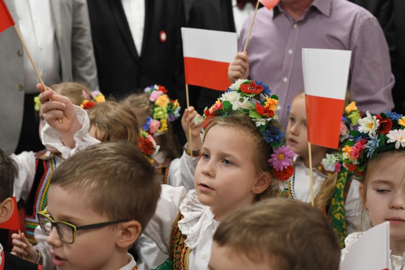 – Dziś cała Polska spotyka się w naszym przedszkolu. A co to jest Polska? Czy ktoś z Was wie – zapytała najmłodszych Ewa Marchlewska, dyrektor Przedszkola nr 7. – Polska to dom rodzinny, serce mamy, taty, babci, dziadzia, siostry, brata. Polska to przedszkole, drzewa, ptaki, snopy leżące w stodole. To nasza Ojczyzna. Dziś opowiedzą nam o niej bohaterowie z grupy „Smerfy”.