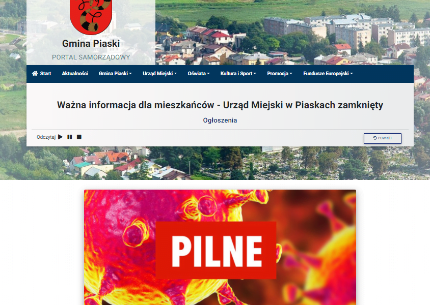 Urząd nie jest jednak zamknięty “na cztery spusty”. Nadal pracują osoby, które nie są zarażone.