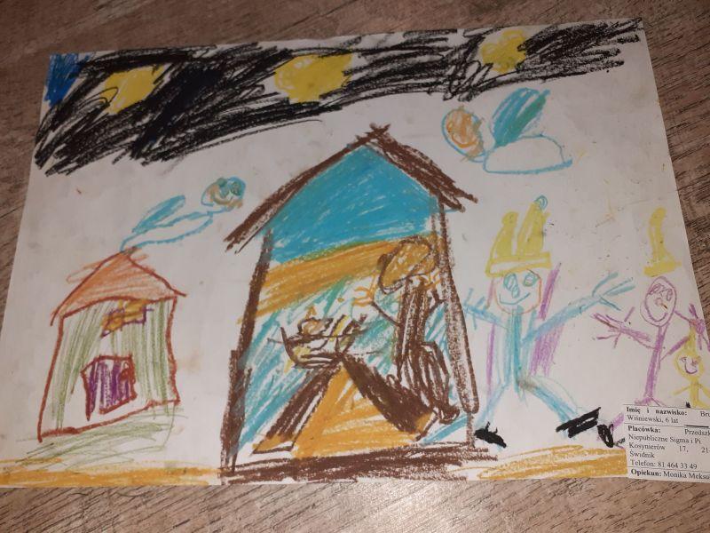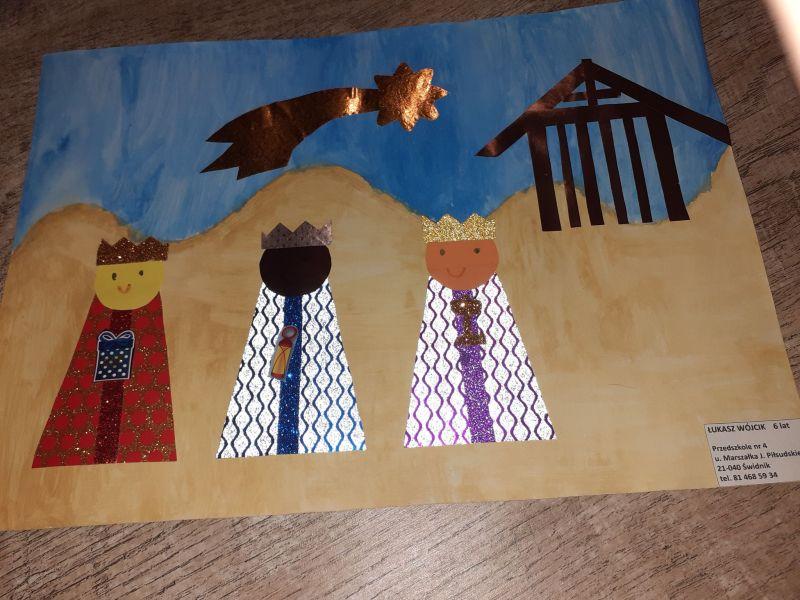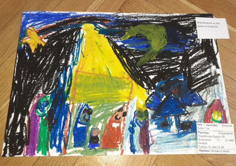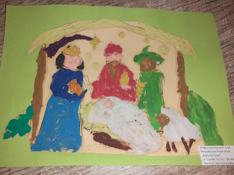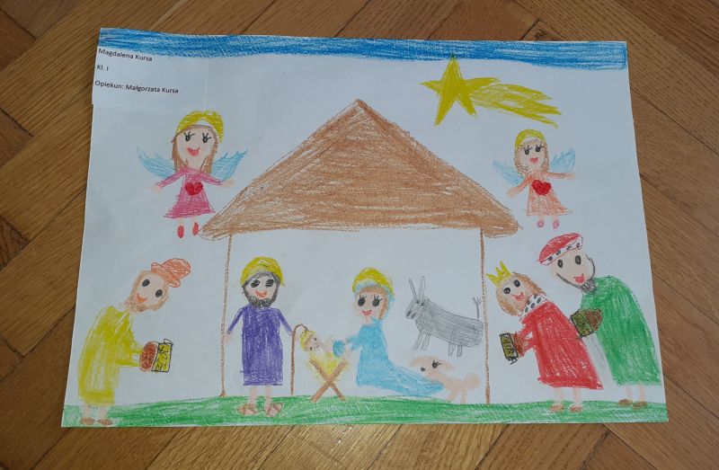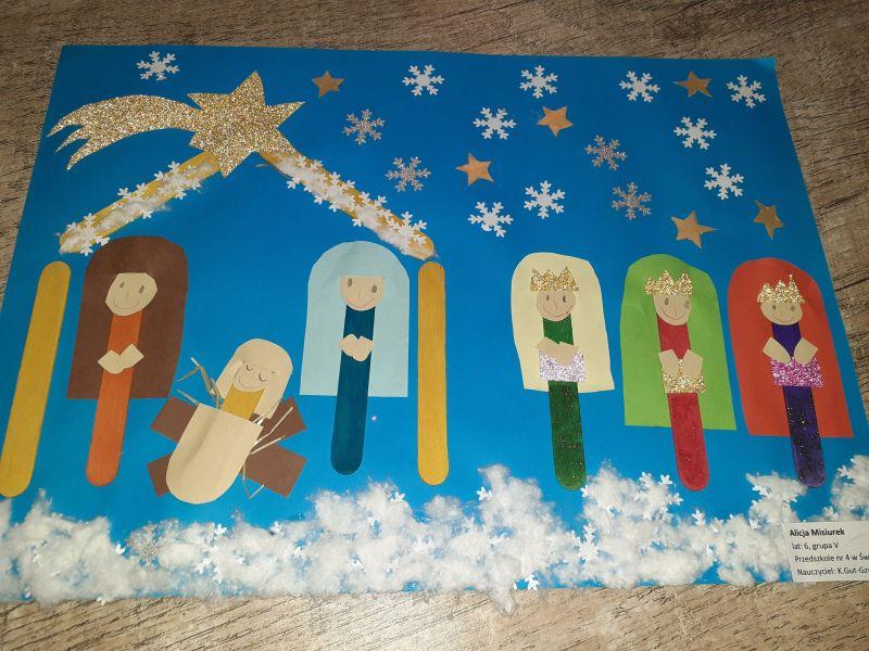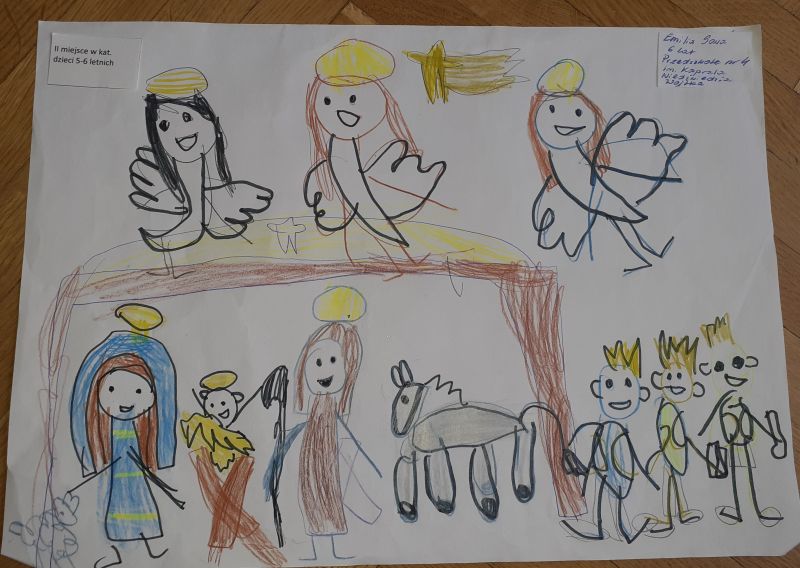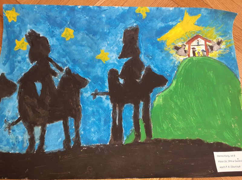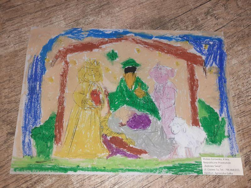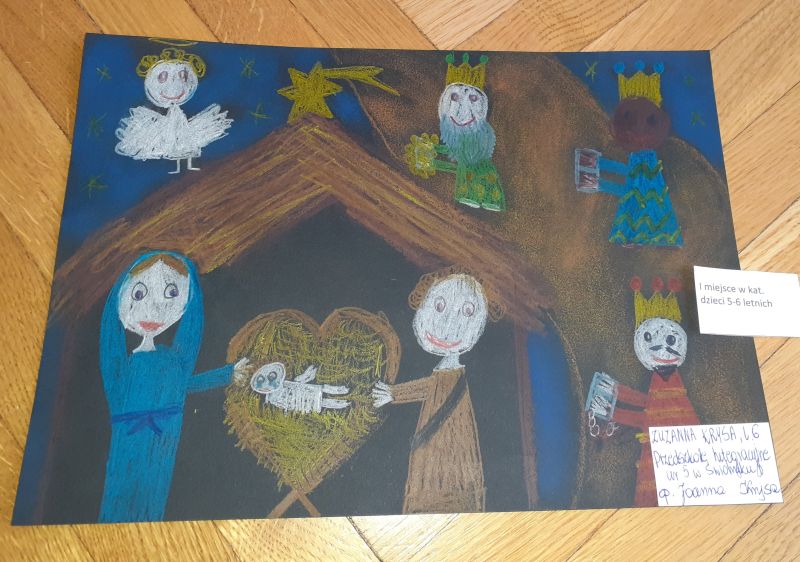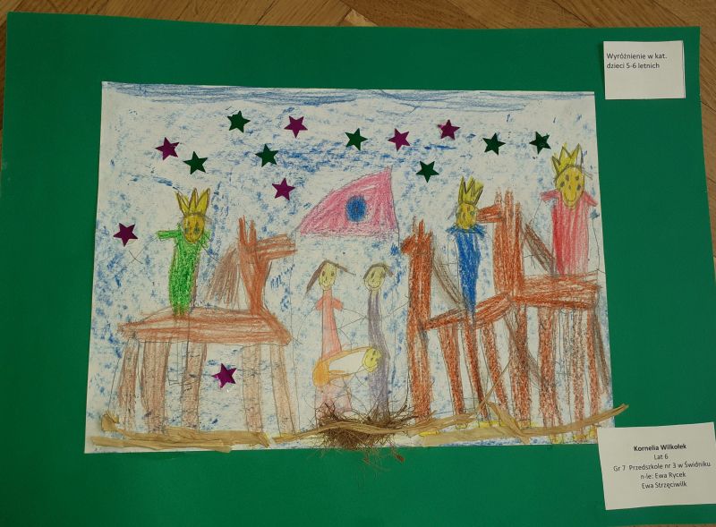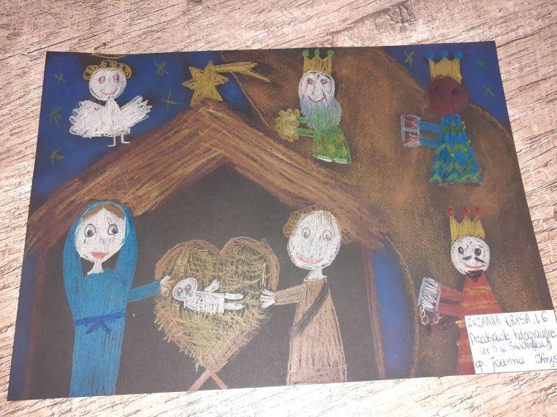 Młodzi plastycy wykazali się zrozumieniem tematu i wielkim talentem. Zobrazowali stajenkę, leżącego na sianku Jezuska, podążających do niego Mędrców. Nie zabrakło zwierząt, które towarzyszyły narodzonemu Dzieciątku oraz gwiazdy prowadzącej Trzech Króli. Dzieci rysowały kredkami, malowały farbami, robiły wyklejanki z bibuły, papieru, waty, plasteliny i drewnianych szpatułek.