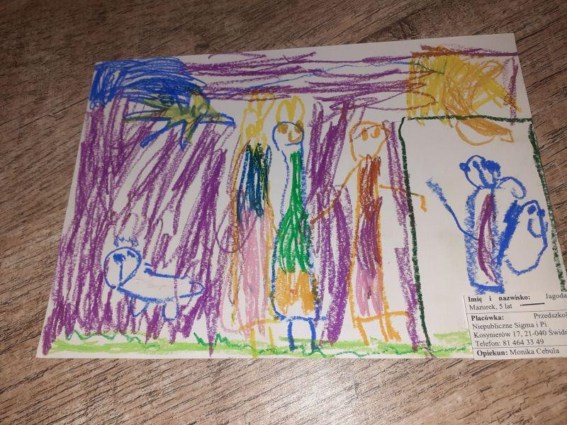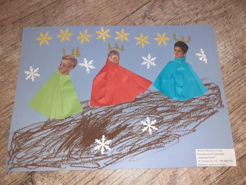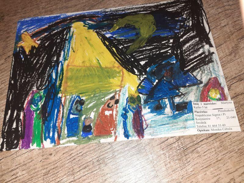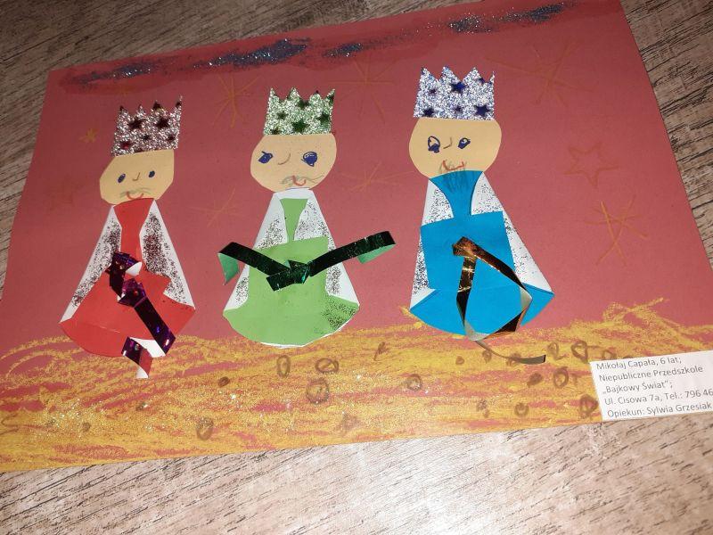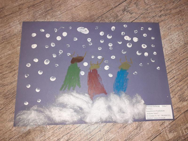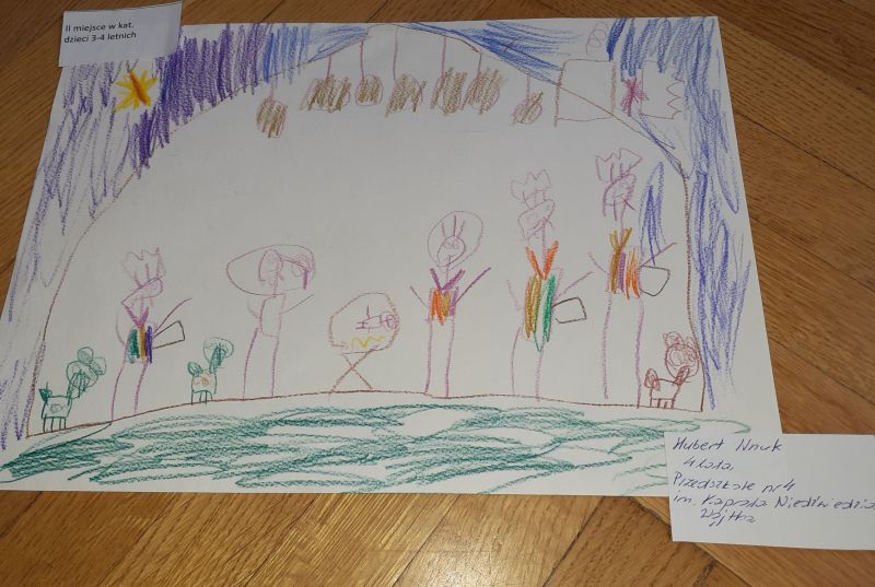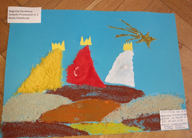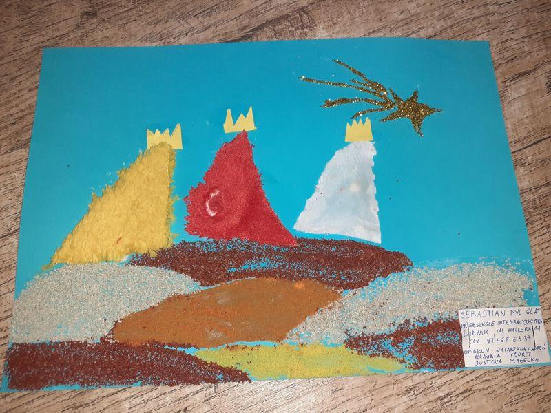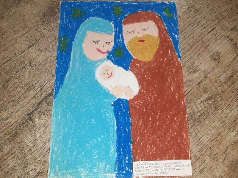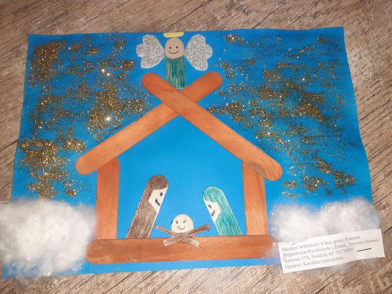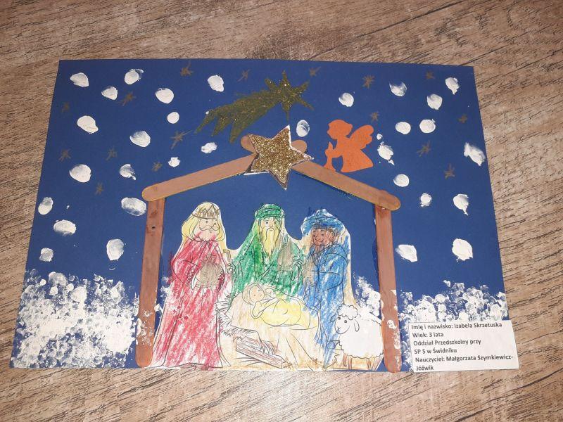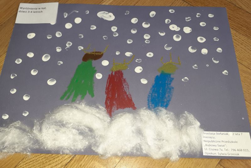 Młodzi plastycy wykazali się zrozumieniem tematu i wielkim talentem. Zobrazowali stajenkę, leżącego na sianku Jezuska, podążających do niego Mędrców. Nie zabrakło zwierząt, które towarzyszyły narodzonemu Dzieciątku oraz gwiazdy prowadzącej Trzech Króli. Dzieci rysowały kredkami, malowały farbami, robiły wyklejanki z bibuły, papieru, waty, plasteliny i drewnianych szpatułek.