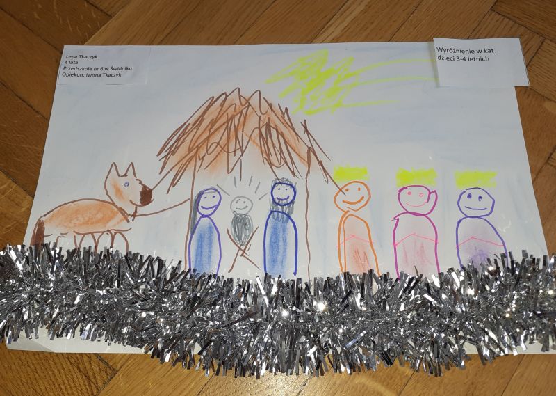 Najmłodsi wzięli udział w konkursie plastycznym, dorośli mogli sprawdzić swoje talenty literackie i dopisać kolejną zwrotkę do kolędy „W żłobie leży”. Doceniono świdniczankę Annę Bryk, nauczycielkę z Przedszkola nr 4. Otrzymała wyróżnienie za słowa: