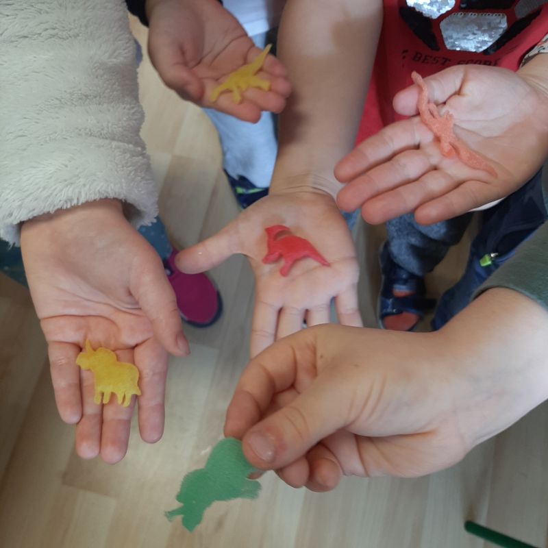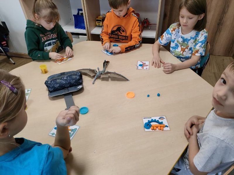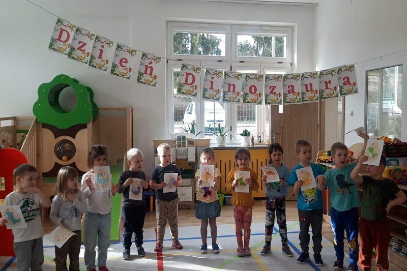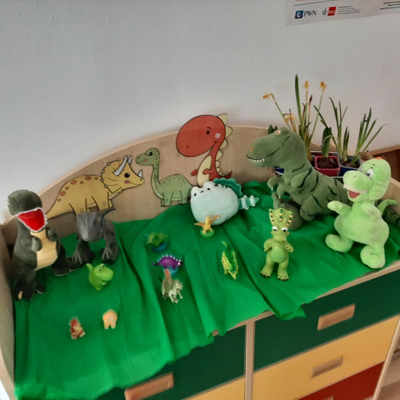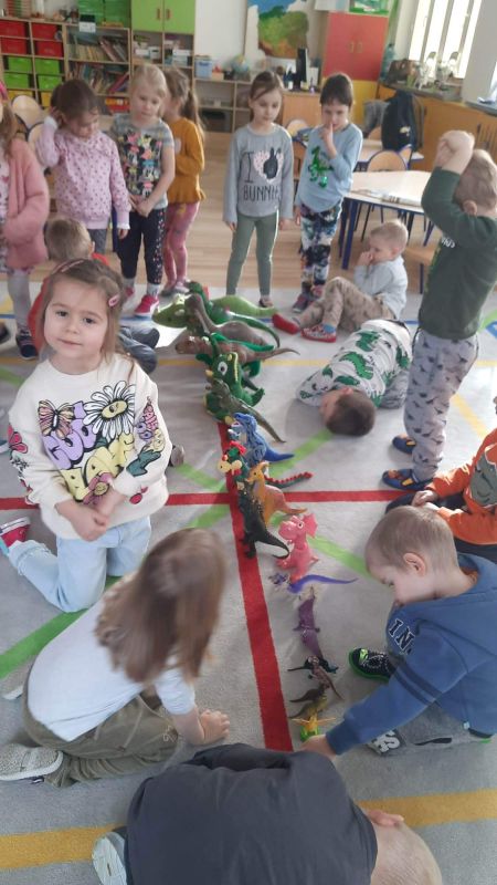 Tego dnia przedszkolna sala zmieniła się niezwykły „jurajski park”, w którym maluchy oglądały dinozaury, plakaty i książki o tych prehistorycznych zwierzętach. Podczas zajęć dzieci poznały świat sprzed milionów lat oraz życie wyjątkowych gadów. Obejrzały film edukacyjny poświęcony prehistorycznym olbrzymom, dowiedziały się m.in. jak wyglądały, czym się żywiły. W specjalnie przygotowanych kącikach przyrody przedszkolaki podziwiały diplodoki, tyranozaury, triceratopsy itp. Nie zabrakło również wykopalisk, a także ciekawych zabaw ruchowych i plastycznych związanych z tematyką zajęć.
