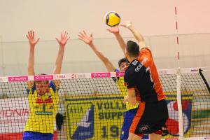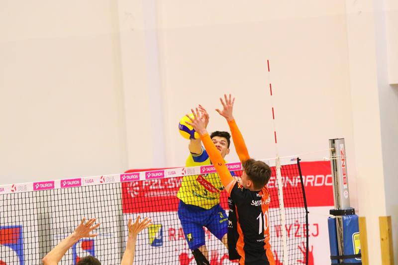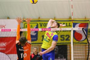 Trzecia partia była bardzo wyrównana do stanu 20:19. Wówczas najpierw żółto-niebiescy zdobyli cenny punkt po długiej wymianie, a chwilę później bezpośrednio zagrywką ukąsił głogowian Sebastian Matula. To podłamało gości, którzy za chwilę stracili kolejny punkt z kontrataku. Seta zakończył skutecznym atakiem Kamil Kosiba.