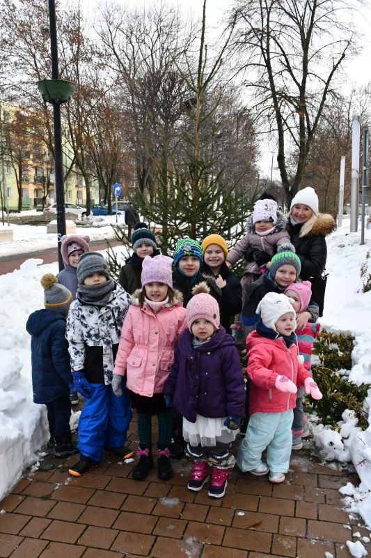Dowozem i ustawieniem drzewka zajęli się pracownicy Przedsiębiorstwa Komunalnego “Pegimek”.