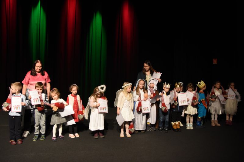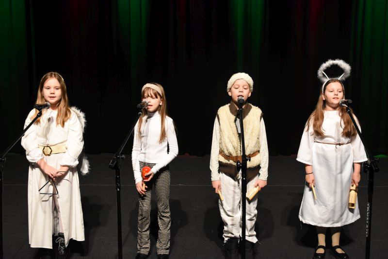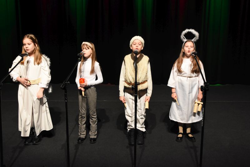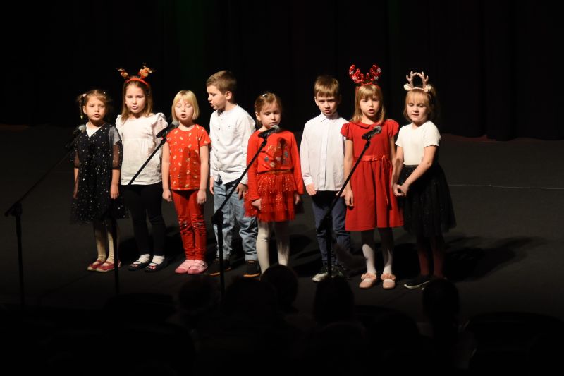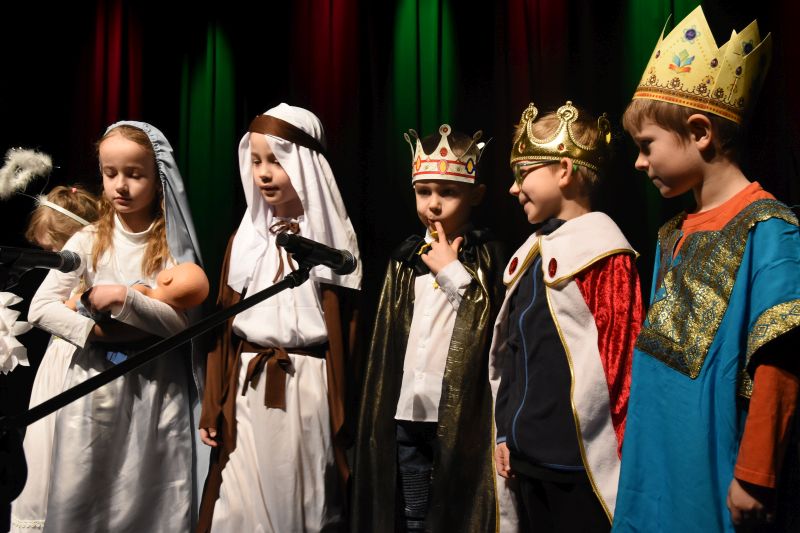 W przeglądzie wystąpiły doskonale przygotowane przez opiekunów grupy Jeżyki i Dzwoneczki (P nr 3), Sówki (OP SP nr 4), Kubusie i Puchatki (P nr 7), Liski (P nr 2), Promyczki (P nr 6), a także zespół Quenya (SDK). Scena MOK zapełniła się młodymi wokalistami, często pięknie ubranymi w stroje ludowe lub z atrybutami i szatami rodem z opowieści biblijnych i z ogromnym entuzjazmem oraz wrażliwością zaśpiewały przygotowane kolędy i pieśni bożonarodzeniowe.