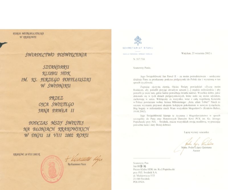 – W 2002 r. na krakowskich błoniach Ojciec Św. Jan Paweł II poświęcił sztandar klubu;