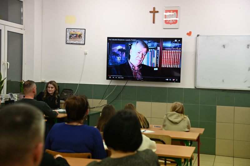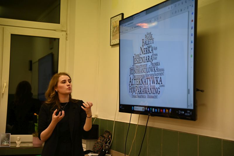 W przerwie na sprawdzanie prac, czym zajęły się Magdalena Hajkowska, Magdalena Bartnik i Beata Nadgrodkiewicz, uczestnicy dyktanda wzięli udział w zabawach językowych, które poprowadziła Emilia Ligęza. Obejrzeli również rozmowę z profesorem Janem Miodkiem, dotyczącą slangu młodzieżowego oraz błędów językowych.