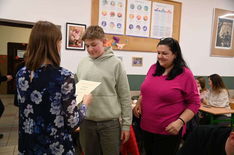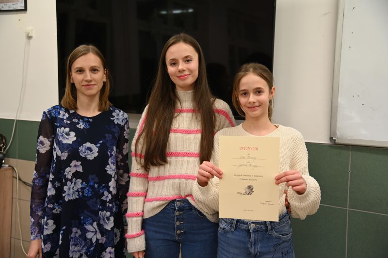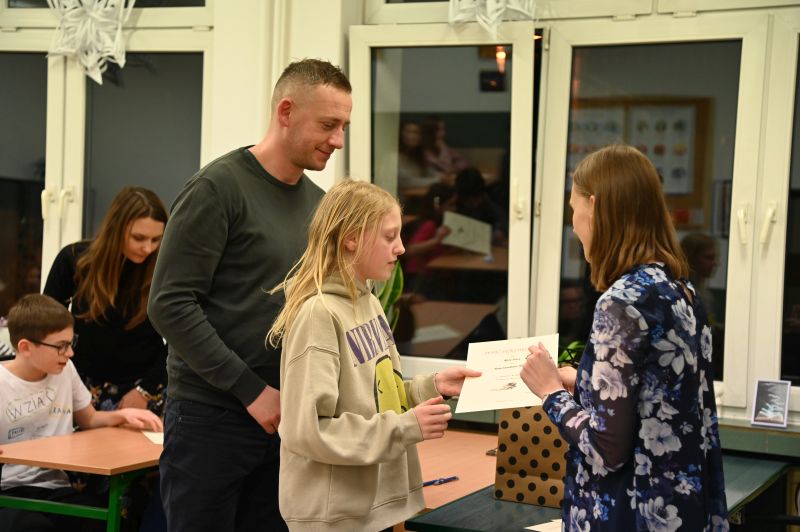 – Wasza ortografia jest na bardzo wysokim poziomie, a najczęstszymi błędami były interpunkcyjne. Dziękuję wszystkim za udział w tej nietypowej formie konkursu i gratuluję wyników – podsumowała M. Hajkowska, wręczając dyplomy każdemu z uczestników.