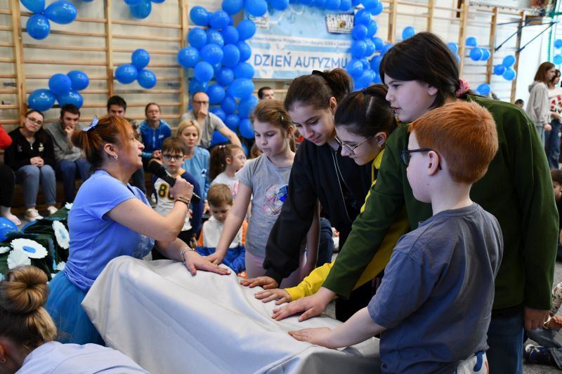 W sali gimnastycznej zebrali się podopieczni ośrodka oraz ich goście: maluchy z Przedszkola Integracyjnego nr 5 oraz uczniowie Szkoły Podstawowej nr 7 (razem tworzą Zespół Szkół nr 1). Powitała ich Elżbieta Krupa, dyrektor SOSW: – Nie uważam, że Dzień Autyzmu to święto. To czas na spotkania. I takie mamy dzisiaj w szkole, z wami. Cieszymy się, że jesteście u nas, że możemy się wspólnie pobawić. Już widziałam, że dzieciom spodobał się nasz nowy, interaktywny stolik.