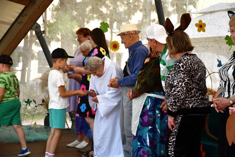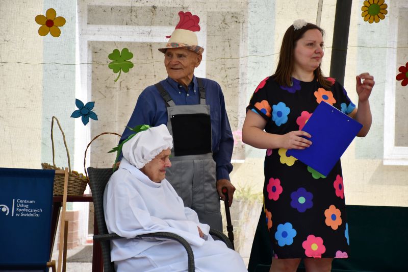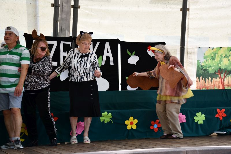 Głos zabrała również Marzena Holko-Piwowarska, kierownik zespołu ds. aktywności społecznej CUS : – Nasi seniorzy przez długi czas ćwiczyli swoje role, by dzisiaj zaprezentować wam „Rzepkę”. Przygotowaliśmy również zagadki z nagrodami, zabawy, a także watę cukrową i kolorowe balony.