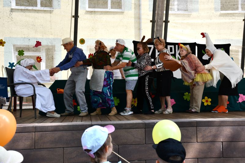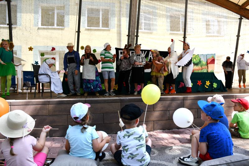 Dzieci z uwagą oglądały przedstawienie w reżyserii Ewy Knap, w których główne role należały do: Rzepki Danusi, Dziadka Władzia, Babci Mieci, Wnuczka Waldka, Mruczka Wandzi, Kitki Grażynki, Kurki Danusi, Gąski Halinki i jej pomocnika Gosi, Bociana Zosi, Żabki Madzi, Kawki Jadzi, Benny Hilla Dj Madzi, Cukinii Wandzi, Truskawki Bożenki, Kukurydzy Marianka, Pomidorka Janinki, Ogóreczka Andrzeja, Narratora Krysi i jej pomocnika Agnieszki. Publiczność nagrodziła aktorów gromkimi brawami. Przedszkolaki z NP Kubuś Puchatek i Przyjaciele wręczyły seniorom piękne upominki w postaci serduszek z cytatem „Sercem za serce”.