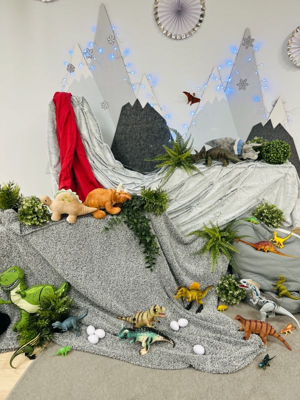 Grupa Góry ze Żłobka Miejskiego nr 3 obchodziła Dzień Dinozaura. Z tej okazji powstała niezwykła scenografia z wulkanem, wodospadem i skalną roślinnością, pośród której rozgościły się zabawkowe dinozaury.