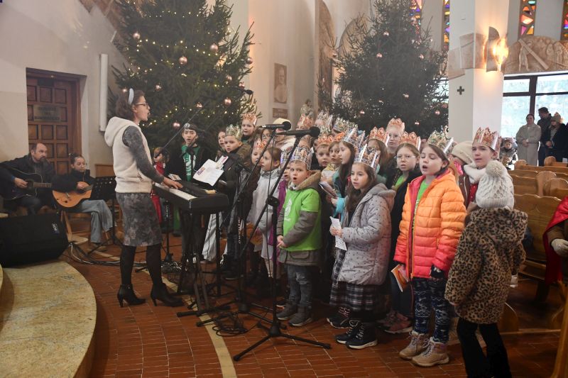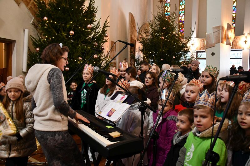 Kilka pieśni o Bożym Narodzeniu wykonały połączone siły chóru męskiego Arion oraz zespołu wokalno-instrumentalnego Noira pod dyrekcją Rafała Palutkiewicza. Na stopniach prowadzących do kościoła pw. NMP Matki Kościoła obie grupy witały uczestników Orszaku Trzech Króli oraz Świętą Rodzinę.