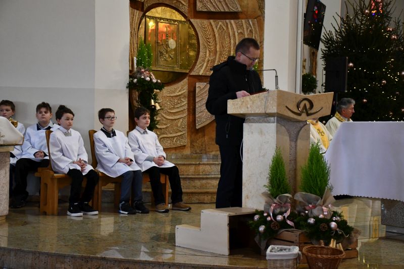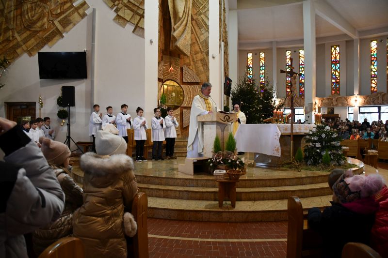 Po odczytaniu fragmentu Ewangelii wg św. Mateusza przez ks. Andrzeja Krasowskiego, proboszcza parafii pw. NMP Matki Kościoła, wierni udali się do świątyni, gdzie odprawiona została msza św., wieńcząca orszakowe uroczystości. O jej oprawę muzyczną zadbała schola „Nutki Chwały”.