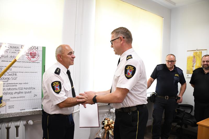 Po przepracowaniu 58 288 godzin, nałożeniu 1532 mandatów, wypisaniu 42 notatników służbowych, działając z premedytacją, umyślnie opuścił miejsce pracy i przeszedł na emeryturę – napisali koledzy żegnając Ryszarda Borowca – starszego inspektora Straży Miejskiej.