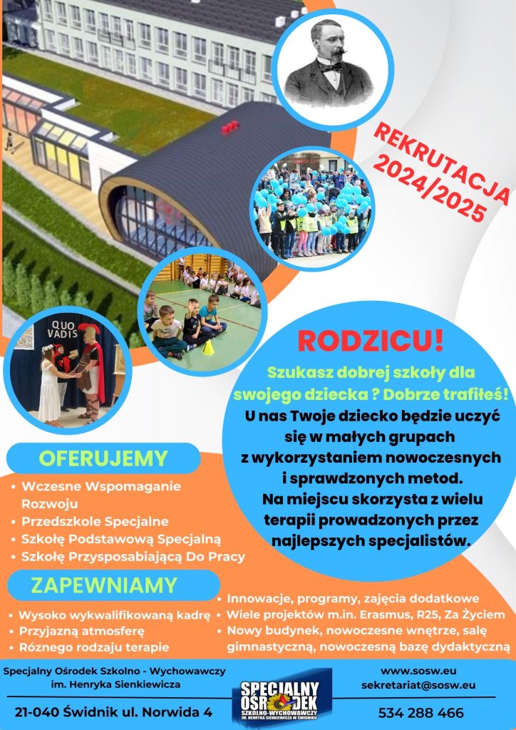 Serdecznie zapraszamy wszystkie dzieci posiadające orzeczenie o potrzebie kształcenia specjalnego do naszego ośrodka! Do wyjątkowej szkoły, która ponad wszystko stawia dobro dziecka!