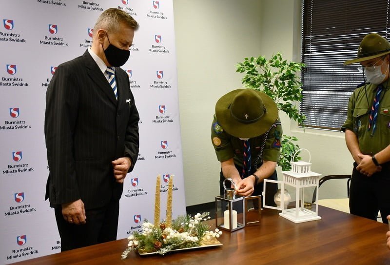 – Jest symbolem narodzenia Pana Jezusa, braterstwa i pokoju – wyjaśniał phm. Łukasz Góralski, komendant Związku Drużyn w Świdniku, który odwiedził ratusz razem ze swoim zastępcą pwd. Dawidem Staniakiem. – Chcemy szerzyć tę ideę, a w czasach, w jakich przyszło nam teraz funkcjonować, jest ona szczególnie ważna. Przekazujemy Światło na ręce pana burmistrza, z życzeniami dla wszystkich świdniczan.