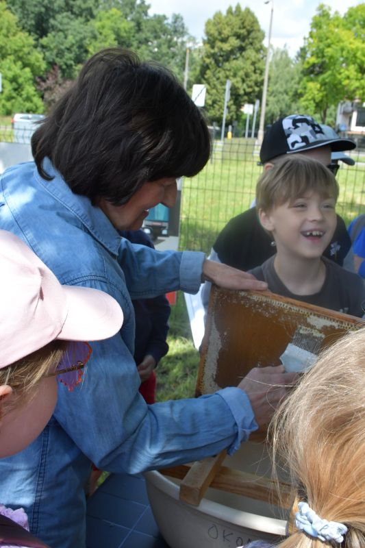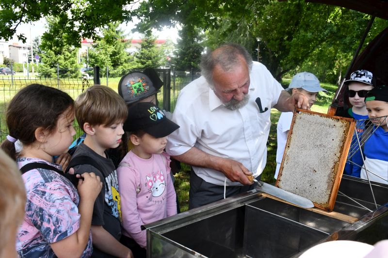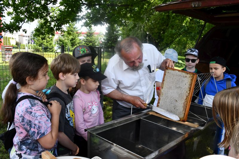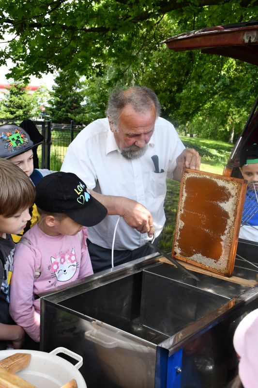 Dzieci z przejęciem przyglądały się pokazowi, później zaś chętnie próbowały, jak smakuje świeżo zebrany i odwirowany miód. Przymierzały też strój pszczelarza i zadawały pytania opiekunowi pasieki. Ciekawi byli, jak długo żyją pszczoły, ile jeden owad może wyprodukować miodu, jakie są jego rodzaje.