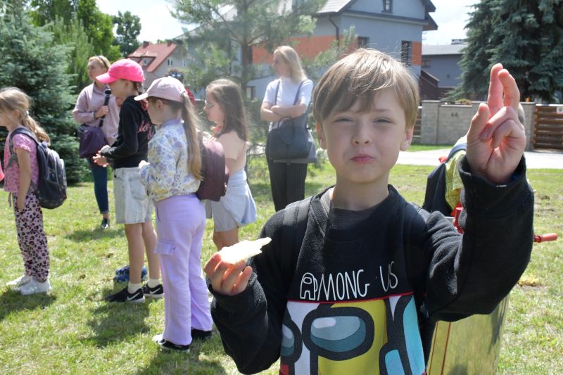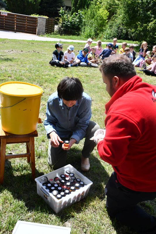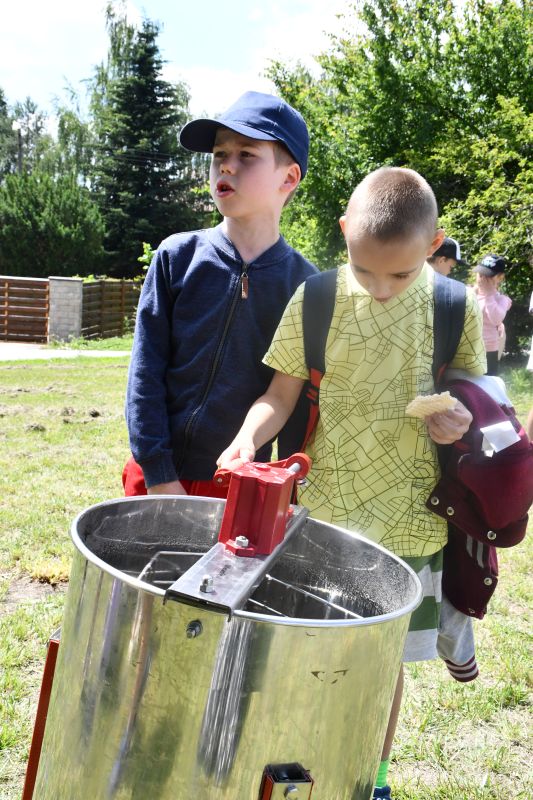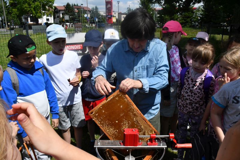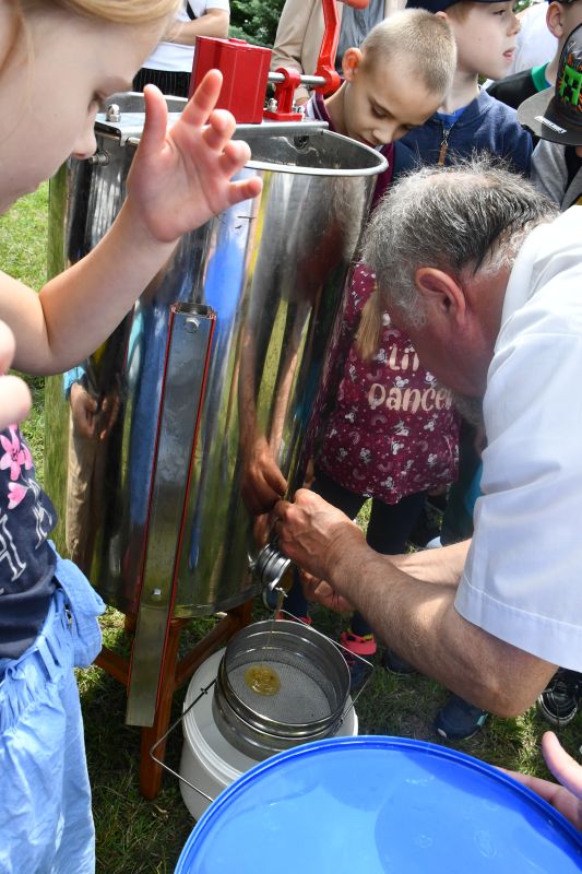 Dzieci z przejęciem przyglądały się pokazowi, później zaś chętnie próbowały, jak smakuje świeżo zebrany i odwirowany miód. Przymierzały też strój pszczelarza i zadawały pytania opiekunowi pasieki. Ciekawi byli, jak długo żyją pszczoły, ile jeden owad może wyprodukować miodu, jakie są jego rodzaje.