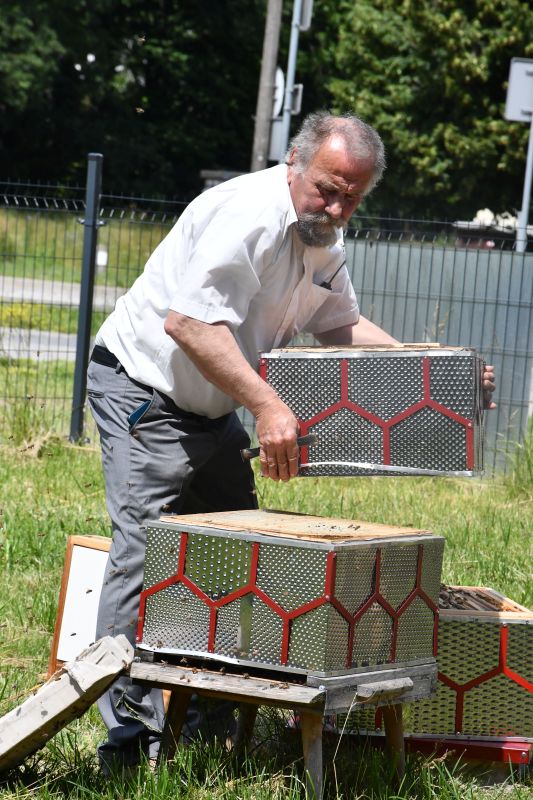– W tym roku z dwóch uli zebrałem 37 litrów. Z trzeciego dzisiaj pobrałem 6 plastrów, zostało jeszcze kilka. W sumie będzie więc około 60 litrów, czyli 90 kilogramów. To dobry wynik. Trzeba dodać, że według badań miód z miejskiej pasieki ma wielokrotnie niższe parametry zanieczyszczenia niż wiejski – wyjaśniał K. Kukawski.
