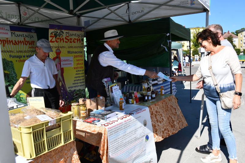 Na placu Konstytucji 3 maja swoje stoiska rozstawili producenci zdrowej i ekologicznej żywności: Wzgórze serem malowane, Kozia Zagroda – sery z Kazimierza Dolnego, Ale Ziółko, Burak ze Świdnika, Alchemik Browar & Pizza, Pasieka na zdrowie, Siedlisko Nadzieja z Kalinówki, Żeń-Szeń. Chmiel S. z Kalinówki, Vitae – Sławomir Szczygielski z Parczewa, Z mojego sadu, Ekomania z Roztocza, Gospodarstwo Ekologiczne Panasiuk z Urszulina, przyPrawia, Winnica Lubelska z Prawiednik, Miody naturalne, Domowe smaki…ze Zwierzyńca, Bacówka – oscypki Piotr Puchała, PSS „Społem”, Swojskie wyroby od Jasia; Holistic Gabinet Fizjoterapii i Masażu; a także rękodzieła: Hoilmio biżuteria, Wiklinowe Cuda – wiklina.net, Vision Wool – wyroby hand made z włóczki, Jargilo Glass Studio – niepowtarzalne formy szklane, Pracownia ceramiczna Igor Kaznowski, Szydełkow.Anki, Moyomi – scrunchie, breloczki, bandamy, opaski, frotki, spinki, Pracownia Artystyczna Dorota Gnieciak, Rękodzieło ze wstążki – Edyta Drozd, Stacja Świdnik II, Dorota Walkowska – przepiękne szydełkowe rozmaitości, Pracownia Rękoczynu – biżuteria hand made, Ewa Kowalik – rękodzieło. Można było popróbować i oczywiście zakupić pyszności. Na poczęstunek zapraszały też Koła Gospodyń Wiejskich z Pełczyna i Żurawnik, serwując regionalne potrawy.