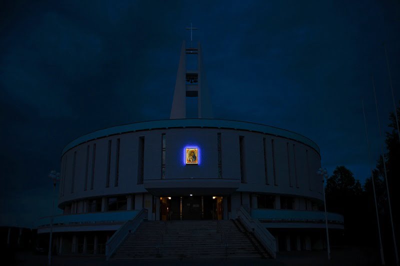 – Kiedy pierwszy raz zobaczyłem na frontonie kościoła mozaikę w nocnym oświetleniu, nie mogłem się od niej oderwać chyba z piętnaście minut. Doskonale dobrane przez Edwarda Nakoniecznego światło wydobywa z niej barwy i klimat, które trudno zauważyć za dnia, choć i wtedy robi duże wrażenie. Brąz zamienia się w złoto, szarość w srebro. Dopiero teraz widać jak obecność obrazu potrafi ocieplić surową bryłę kościoła, nadać jej dodatkowego sacrum – mówi ksiądz kanonik i dodaje: – Niewiele jest w naszej archidiecezji podobnych obiektów. Jedyny, jaki mi się kojarzy to mozaika w kościele parafialnym w Poniatowej. Dlatego możemy szczycić się tym, że posiadamy dzieło wyjątkowe.