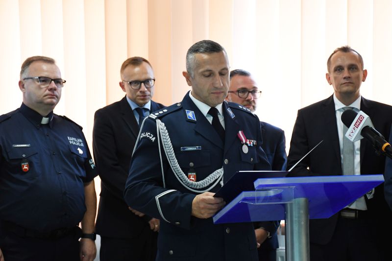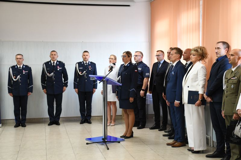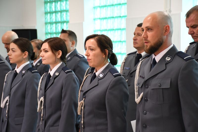 Zgromadzonych gości przywitał Komendant Powiatowy Policji w Świdniku, podinsp. Zbigniew Oleszczuk: – Szanowni państwo, w tym roku mija 104. rocznica utworzenia Policji Państwowej. 104 lata codziennej służby policjantów dla naszej ojczyzny. Bycie funkcjonariuszem to służenie ludziom oraz czuwanie nad ich bezpieczeństwem. To dziesiątki interwencji na co dzień, niesienie pomocy w różnych sytuacjach, wykonywanie wielu skomplikowanych czynności, wymagających pełnego zaangażowania, profesjonalizmu i poświęcenia. Ostatnie lata pokazały nam wartość bezpieczeństwa, a działania policjantów umożliwiły zachowanie normalnego funkcjonowania naszym obywatelom i osobom pokrzywdzonym przez wojnę. Nasze relacje z mieszkańcami, ich zaufanie oraz poczucie bezpieczeństwa motywują do dalszej służby.