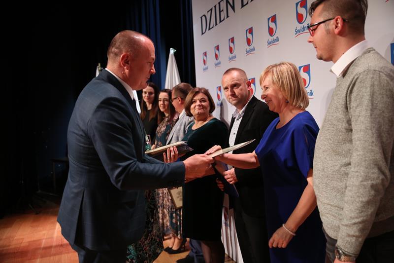 Za pracę bohaterów uroczystości podziękował burmistrz Waldemar Jakson: – Dzisiaj mówimy o sukcesach i radościach. My, jako władze miasta, jesteśmy bardzo zadowoleni z poziomu oświaty w Świdniku. Ojców tego sukcesu jest bardzo dużo – są to nauczyciele i pracownicy oświaty, co zawsze będę podkreślał. Zdawalność i osiągnięcia świdnickich uczniów są bardzo wysokie. Oświata jest ważnym zadaniem, co przejawia się także w dużych inwestycjach. Wiem, że przed nami jest jeszcze wiele do zrobienia, na pewno będziemy nad tym pracować. Gratuluję wszystkim wyróżnionym i chcę podkreślić, że bardzo cenimy Państwa pracę.