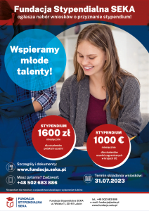 – Uczestnictwo w programie stypendialnym SEKA z pewnością ułatwi młodym ludziom skupienie się na tym, co najważniejsze – nauce i rozwoju osobistym. To także możliwość nawiązania cennych kontaktów, które w przyszłości mogą pomóc w otworzeniu drzwi do nowych możliwości czy w znalezieniu pracy po studiach – czytamy na stronie fundacji.