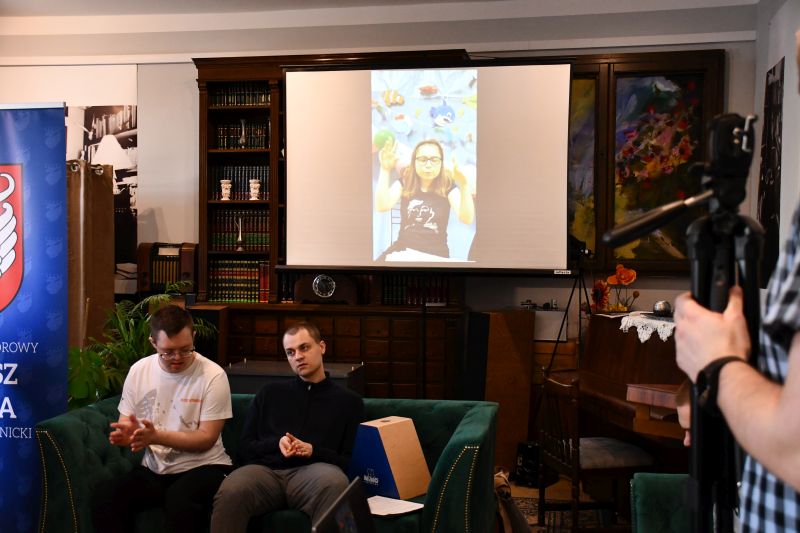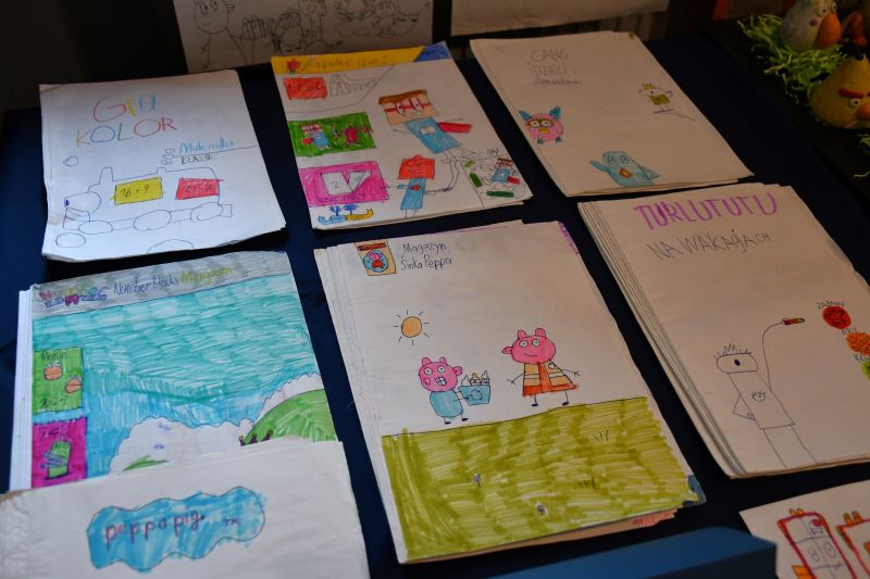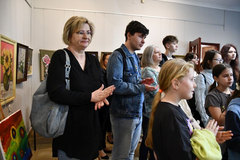 Głos zabrał również Piotr Jankowski, dyrektor MPBP: – Bardzo nam miło, że jesteście dzisiaj z nami. My z wami zawsze, przy różnych okazjach. 21 marca nosiliśmy różnokolorowe skarpetki, na Dzień Autyzmu świeciliśmy na niebiesko. Cieszę się, że wystawa młodych twórców znowu jest u nas. Przychodzą tu osoby w różnym wieku, więc bądźcie pewni, że te dzieła obejrzy cały Świdnik, a dzięki relacji w naszych mediach pewnie i cały świat. W tym roku miasto świętuje 70-lecie nadania praw miejskich, a w waszych pracach odnajduję elementy związane ze Świdnikiem, czyli lotnictwo czy motoryzację. Super, tak trzymajcie.