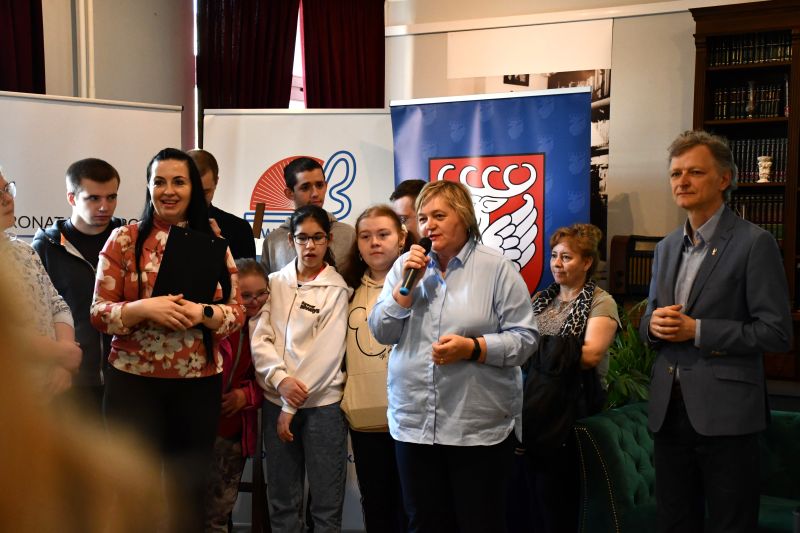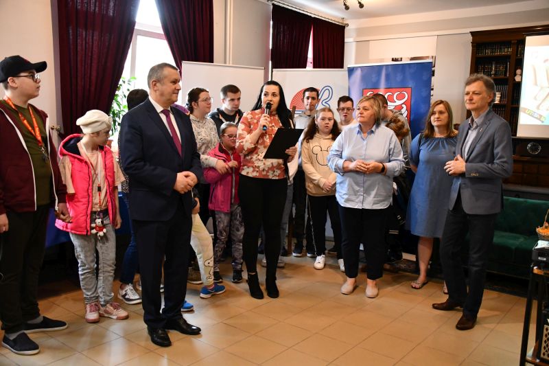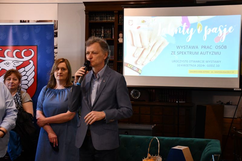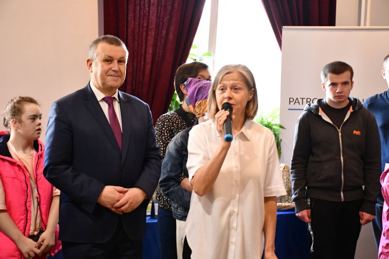 – Każdy artysta to bardzo wrażliwy człowiek. Dobrze jest jak może to przelewać na różne techniki, prace i później jeszcze my możemy to oglądać. To bardzo ważne nie tylko dla niego, ale i dla nas. Ważne jest też, abyśmy rozumieli autystów. 2 kwietnia obchodziliśmy Światowy Dzień Świadomości Autyzmu. Coraz częściej mówi się, że już nie nazywamy go „świadomości”, ale tolerancji. Każdy z nas jest różny, każdy ma inne potrzeby, jest jednak tak samo ważny. To w was nadzieja, wasza też rola, że będziecie w szkołach czy środowisku akceptowali dzieci, które troszeczkę się od was różnią – podkreślała Elżbieta Krupa, dyrektor SOSW, zwracając się do młodszej części publiczności. Dodała: – Kiedy w 2014 roku rozpoczynaliśmy działania na rzecz świadomości autyzmu, nie mieliśmy pojęcia, że ta kula śniegowa tak się rozpędzi. Było wiele pięknych akcji, konkursów i koncertów. Dziękuję władzom miasta, powiatu i biblioteki za wsparcie naszych inicjatyw. Słowa podziękowania kieruję do Przedsiębiorstwa Komunalnego Pegimek, do naszych nauczycieli i Stowarzyszenia oraz oczywiście do naszych artystów i wszystkich, którzy tutaj dzisiaj z nami są.