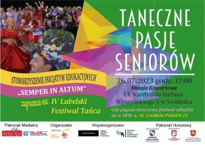 Patronat honorowy nad IV Lubelskim Festiwalem Tańca „Taneczne Pasje Seniorów” objęli: marszałek województwa lubelskiego Jarosław Stawiarski, burmistrz Waldemar Jakson i starosta Łukasz Reszka.