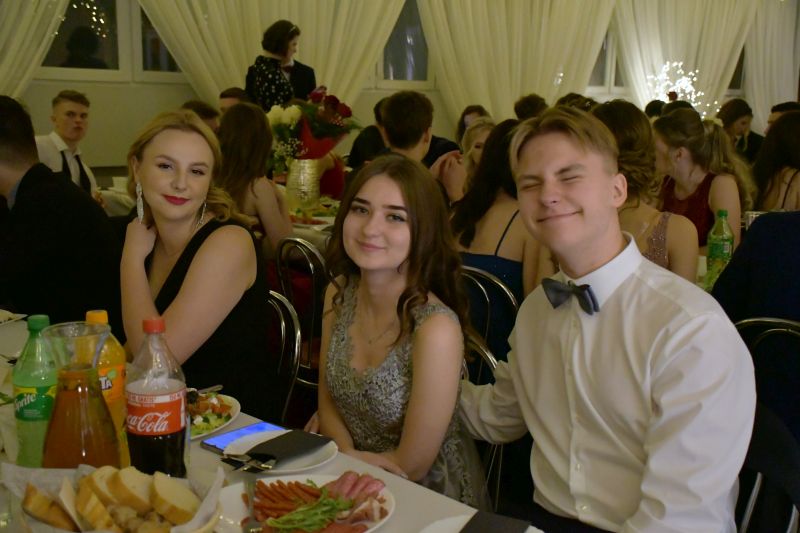 Kiedy tradycji stało się zadość a później wszyscy nabrali sił po smacznej kolacji, rozpoczęła się zabawa do białego rana. Trzecioklasiści, parami lub w kółeczkach, tworząc taneczne wężyki i pociągi, bawili się w rytm najnowszych przebojów muzyki młodzieżowej i dyskotekowej. Atmosfera na sali była naprawdę gorąca. Teraz jednak pozostało nam już tylko powiedzieć: minęła studniówka z wielkim hukiem, czas ucieka i matura coraz bliżej…