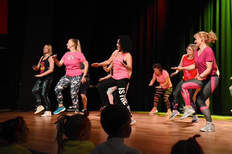 Swoje umiejętności pokazały grupy: Zumba Kids, przedszkolaków, dorosłych (Cza-Cza-Cza, Salsa Rueda De Casino, Bachata, Jive), tańca towarzyskiego, Zumba Fitness, Belly Dance, Latino Mix oraz Lady Styling.