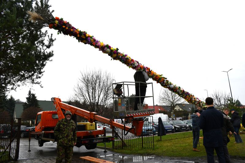Przygotowań i pracy było wiele, ale już jest. Od godz. 10.00, przed kościołem pw. Św. Kingi stoi 13-metrowa, kolorowa palma. Tradycję tę, z inicjatywy Magdaleny Celińskiej, zapoczątkowały w 2018 roku temu Stowarzyszenie i Chór Świętej Kingi.