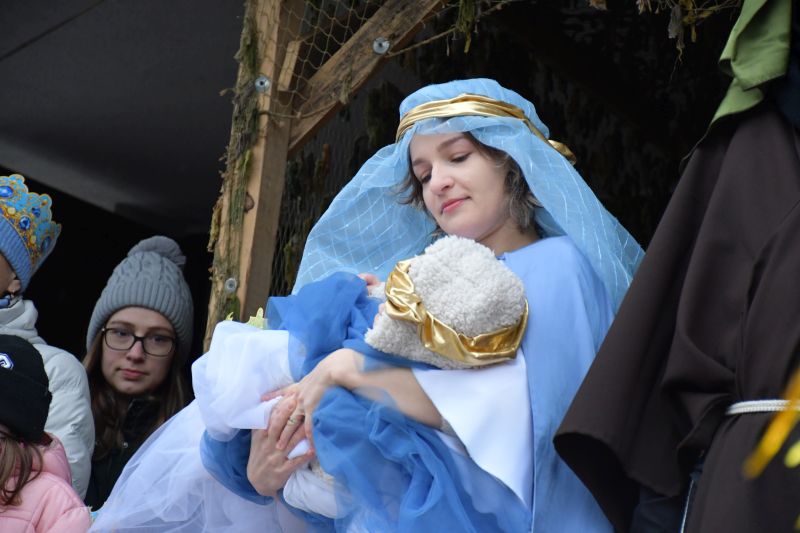 Uczestnicy orszaku obejrzeli również scenki, przygotowane przez artystów z Centrum Kultury w Mełgwi (pasterze) i Świdnickiej Grupy Teatralnej „Teatr Drogi” (Herod) oraz zespół Noira z MOK (brama anielska).