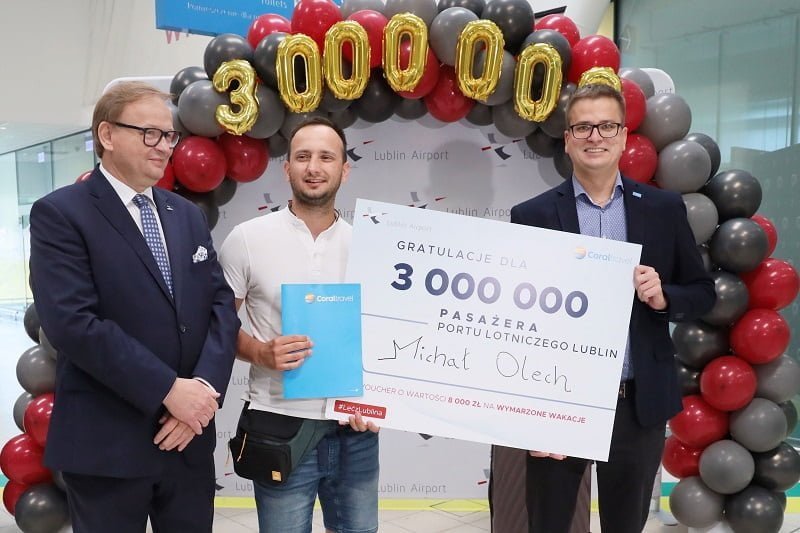 Wczoraj (28 czerwca) Port Lotniczy Lublin obsłużył trzy milionowego pasażera. Był nim Michał Olech, który przed godz. 10.00 przyleciał z tureckiej Antalyi na pokładzie samolotu linii lotniczej Enter Air.