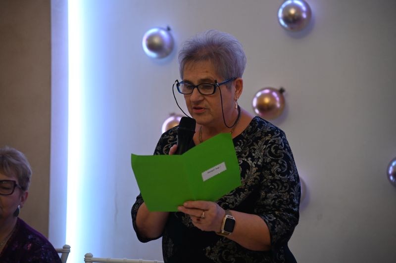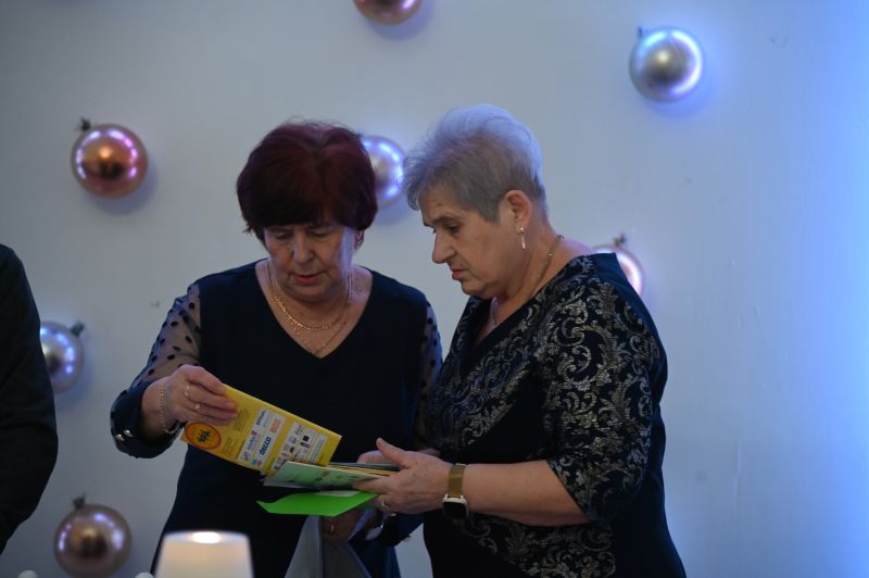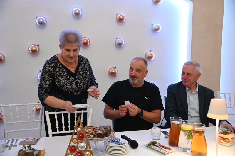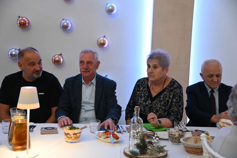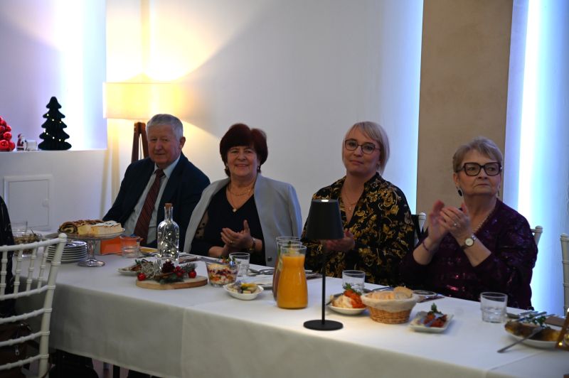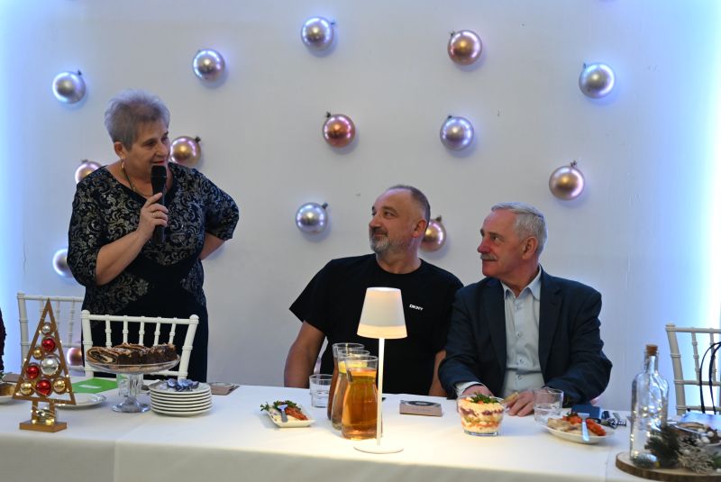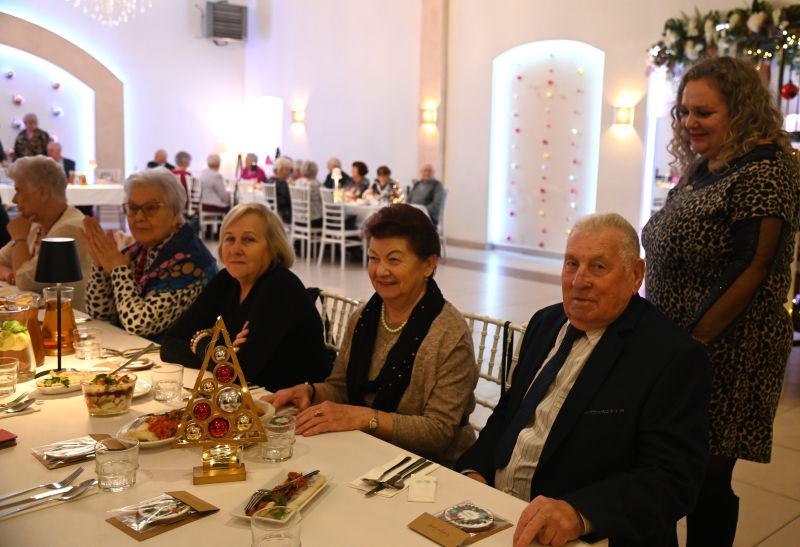 – Witam bardzo serdecznie wszystkich członków naszego związku. Są z nami dzisiaj również pan burmistrz Marcin Dmowski, Leszek Gryta, nasz sponsor, pani Aleksandra Gucma, która z nami współpracuje i z którą jeździmy na wycieczki, pani Edyta Socha, kierownik Spółdzielczego Domu Kultury. Gdy na niebie wigilijnym pierwsza gwiazdka zaświeci, gdy w spokoju do stołu Państwo zasiądziecie, niech z kolędą przypłynął do Państwa te życzenia: zdrowia, miłości oraz wszelkiej obfitości w duchu świąt Bożego Narodzenia. Życzę najpiękniejszych świąt, szczęśliwego Nowego Roku 2026 oraz wszelkiej pomyślności, dużo radości i ciepła rodzinnego grona – mówiła Anna Stachyra, przewodnicząca PZEiR oddział rejonowy w Świdniku.