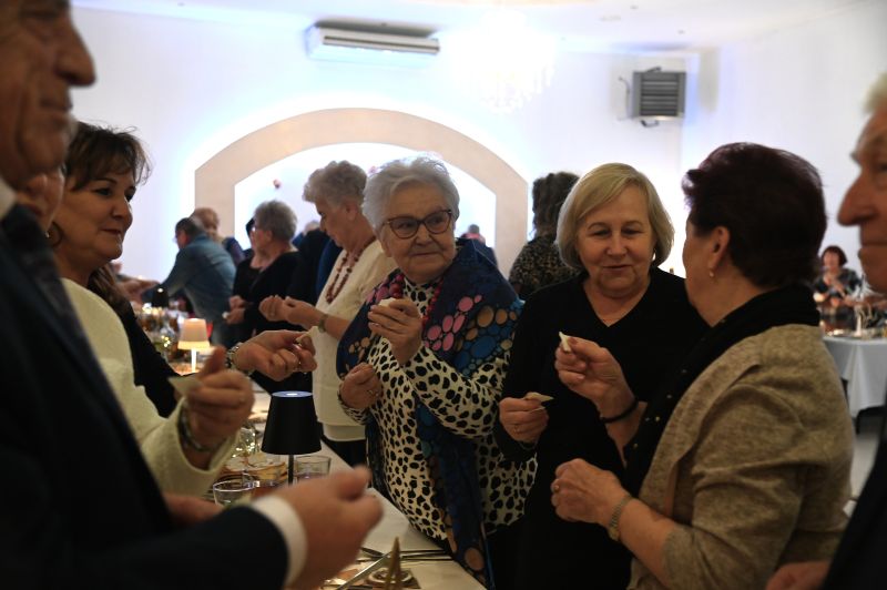 Seniorzy zgromadzili się dzisiaj w restauracji Favilla, by wspólnie celebrować nadchodzące święta, a uroczystość rozpoczęła się od złożenia życzeń.