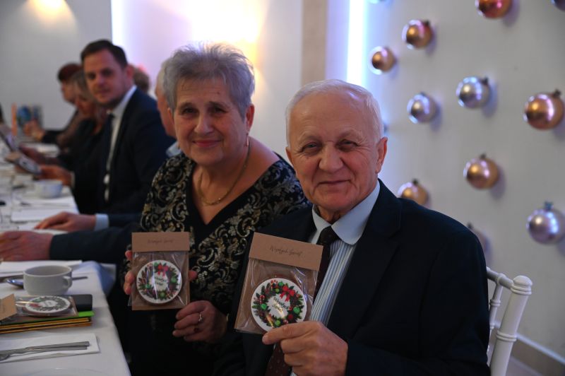 – Witam bardzo serdecznie wszystkich członków naszego związku. Są z nami dzisiaj również pan burmistrz Marcin Dmowski, Leszek Gryta, nasz sponsor, pani Aleksandra Gucma, która z nami współpracuje i z którą jeździmy na wycieczki, pani Edyta Socha, kierownik Spółdzielczego Domu Kultury. Gdy na niebie wigilijnym pierwsza gwiazdka zaświeci, gdy w spokoju do stołu Państwo zasiądziecie, niech z kolędą przypłynął do Państwa te życzenia: zdrowia, miłości oraz wszelkiej obfitości w duchu świąt Bożego Narodzenia. Życzę najpiękniejszych świąt, szczęśliwego Nowego Roku 2026 oraz wszelkiej pomyślności, dużo radości i ciepła rodzinnego grona – mówiła Anna Stachyra, przewodnicząca PZEiR oddział rejonowy w Świdniku.