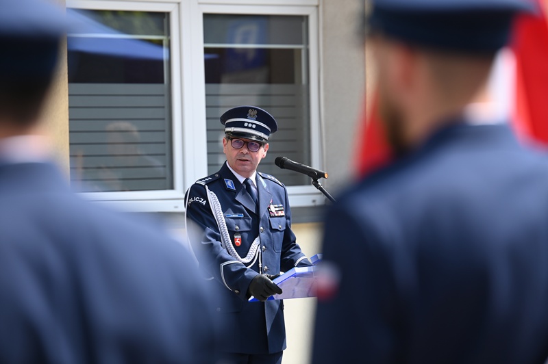 Insp. Andrzej Mioduna, zastępca komendanta wojewódzkiego Policji w Lublinie, odczytał list w imieniu komendanta wojewódzkiego Policji w Lublinie mł. insp. Tomasza Gila: – Dziękuję za profesjonalizm, oddanie służbie oraz wysiłek i zaangażowanie, którymi wykazujecie się każdego dnia. Taka postawa jest powodem do dumy i szacunku w oczach zarówno przełożonych, jak i lokalnej społeczności. W tym roku szczególnie zwracam uwagę na stulecie obecności kobiet w Policji. Z każdą dekadą formacja staje się bardziej nowoczesna i dostosowana do zmieniających się realiów. Dziś stajemy przed nowymi wyzwaniami. Współczesne zagrożenia wymagają od nas szybkiej reakcji, wysokiej jakości kształcenia, ścisłej współpracy z innymi służbami, instytucjami i lokalnym samorządem. Pragnę złożyć gratulacje wszystkim funkcjonariuszom, którzy otrzymali awanse i zasłużone odznaczenia. Wasze osiągnięcia są dowodem na to, że rzetelna i oddana służba znajduje uznanie i zasługuje na najwyższy szacunek. – Insp. A. Mioduna dodał: – To jest wasze święto, wasz czas. Wszystkim gratuluję awansów, które są podsumowaniem służby. Wyniki, które komenda osiąga, zaangażowanie w służbę, są powodem do ogromnej dumy. Współpraca z innymi służbami, instytucjami i samorządem jest naprawdę niesamowita i chcę, by dalej była utrzymywana na tak wysokim poziomie. Widzimy codzienne wsparcie od samorządów i bardzo za nie dziękujemy. Dzięki temu możemy lepiej funkcjonować.