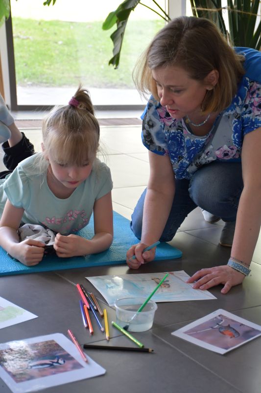 Dzieci z klasy „0A” ze Szkoły Podstawowej nr 5 bardzo poważnie podeszły do artystycznego zadania i w skupieniu malowały różne gatunki ptaków, wzorując się na przyniesionych przez panią Katarzynę fotografiach. W ten sposób powstały fantastyczne, kolorowe akwarele.