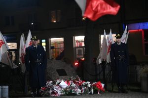 Starosta Waldemar Jakson zauważył jak dużym zagrożeniem dla pamięci historycznej są działania zmierzające do zmiany pojęć, co z kolei rozmywa granicę między dobrem i złem oraz osłabia zdolność narodu do budowania silnego państwa: – Jest taka zasada w językoznawstwie, która mówi, że nasz język myśli za nas. I oczywiście władza totalitarna zawsze stara się zmieniać język, zmieniać pojęcia. Chodzi o jasne powiedzenie, co to jest zło, co to jest dobro, kto był bohaterem, kto był zdrajcą. Chcę bardzo państwu podziękować, bo to, co my tutaj robimy, jest taką próbą przeciwdziałania temu. Musimy pamiętać o tych wspaniałych Polakach, którzy walczyli, ginęli, żebyśmy mogli żyć, żebyśmy mogli ten kawałek ziemi nazywać naszą Ojczyzną. Dodam, że pełnią państwo bardzo ważną rolę strażników pamięci i tych, którzy niosą tą pamięć dalej.