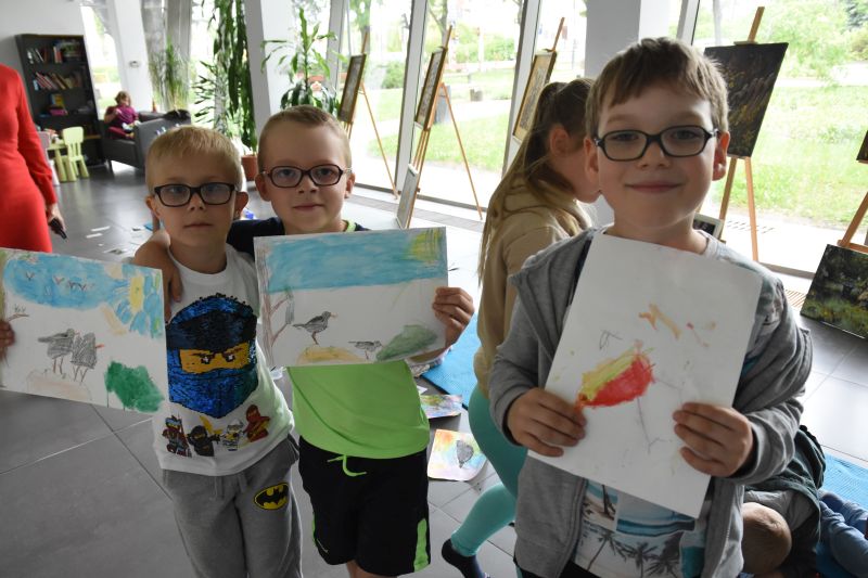 W Miejskim Ośrodku Kultury, w majowy poranek, po raz kolejny Katarzyna Woś-Ciechomska rozmawiała o sztuce i ptakach z zaproszonymi dziećmi, tym razem z zerówki ze Szkoły Podstawowej nr 7.