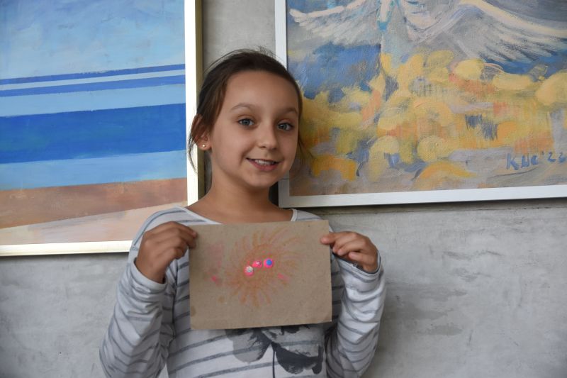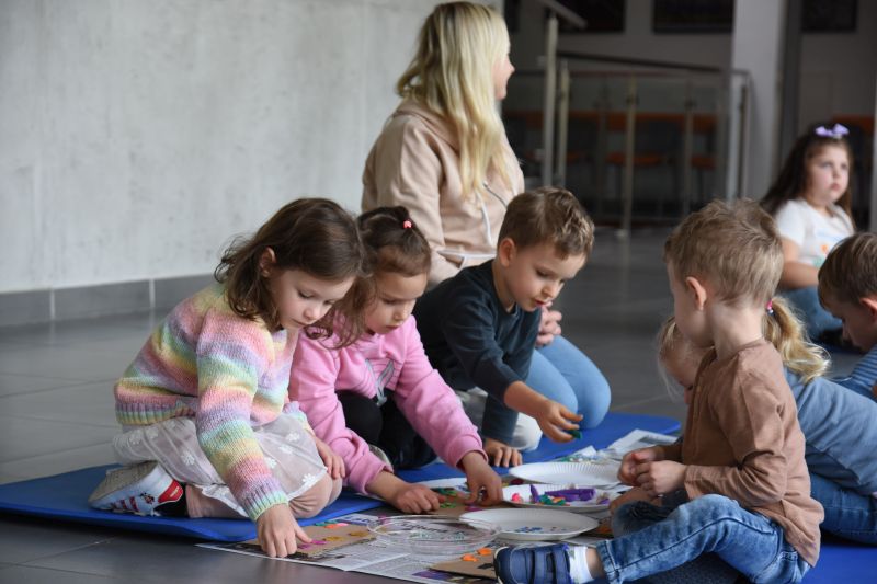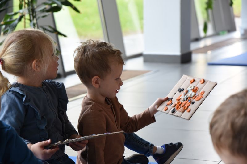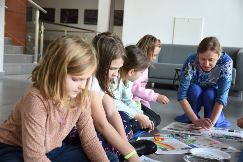 Artystka, malarka, na co dzień edukatorka „Spynki”, zaprosiła zgromadzonych gości do świata sztuki. Zaprezentowała dzieciom swoje prace, a jej młodzi słuchacze z ochotą odpowiadali na każde z pytań. Następnie przedszkolaki i uczniowie wzięły sprawy w swoje ręce – a dokładniej karton i plastelinę. W efekcie powstały piękne i kolorowe prace.