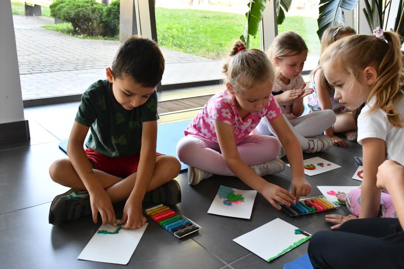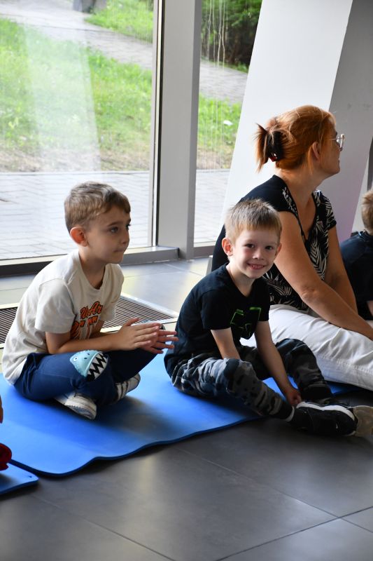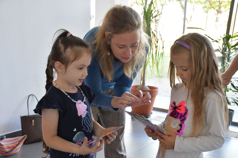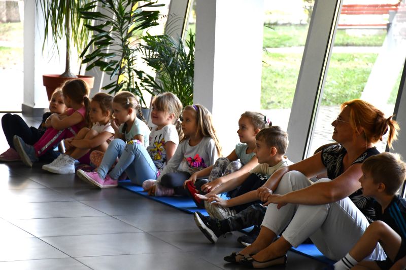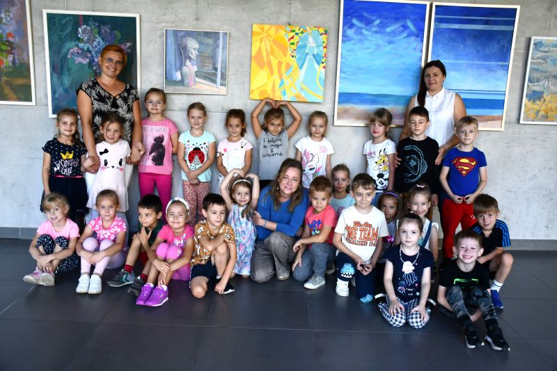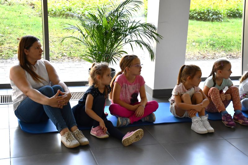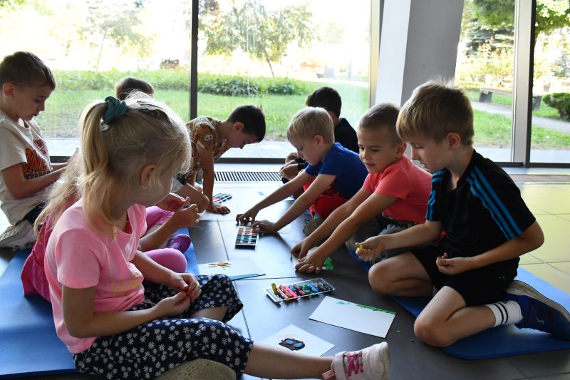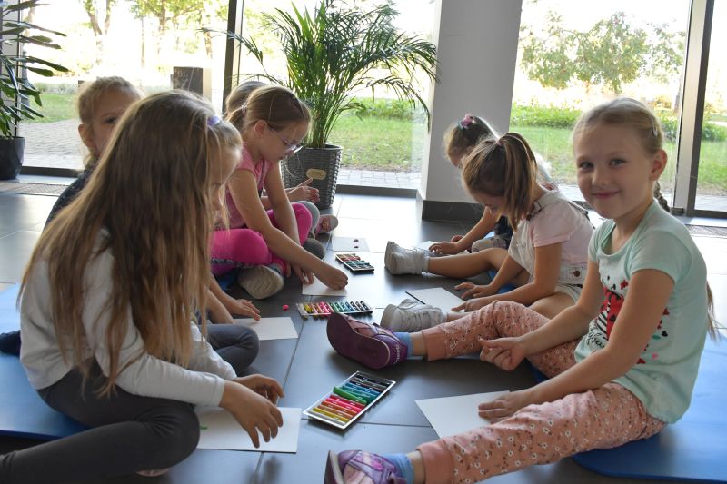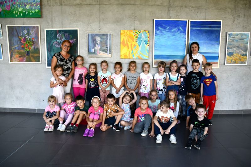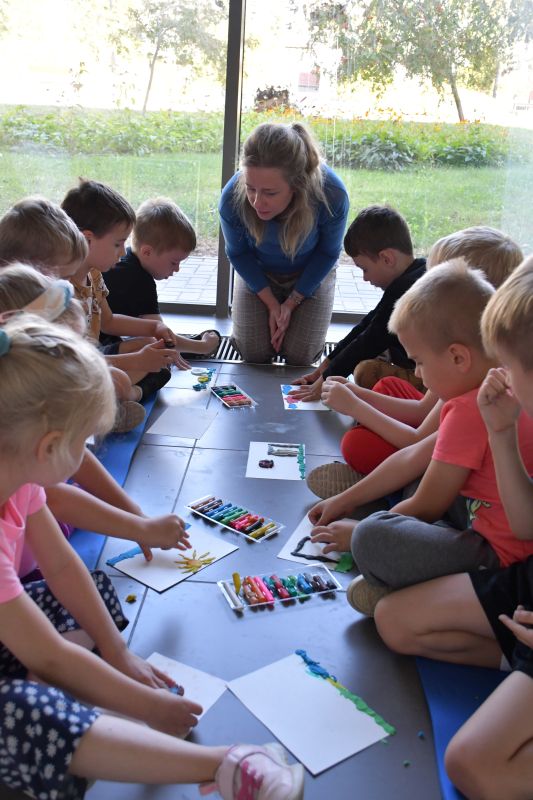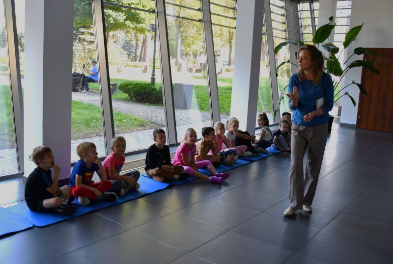 Pani Katarzyna opowiedziała również dzieciom o wystawie swoich prac, które do 15 października będą zdobiły ściany Galerii „Za Szybą”, a także o tym, jakie materiały i techniki można wykorzystać do stworzenia obrazu. Nie zabrakło też wspólnej zabawy w podawanie poprawnych odpowiedzi na pytania związane ze sztuką i dzisiejszymi zajęciami.