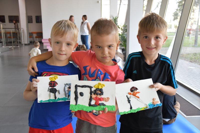 Dzieci z grupy „Kleksiki” z Przedszkola nr 3 bardzo lubią rysować i robią to z wielkim sercem oraz zaangażowaniem, co udowodniły podczas dzisiejszych warsztatów w Miejskim Ośrodku Kultury. Poprowadziła je Katarzyna Woś-Ciechomska, artystka, malarka, na co dzień edukatorka „Spynki”, która zaprosiła uczestników do zabawy z plasteliną.
