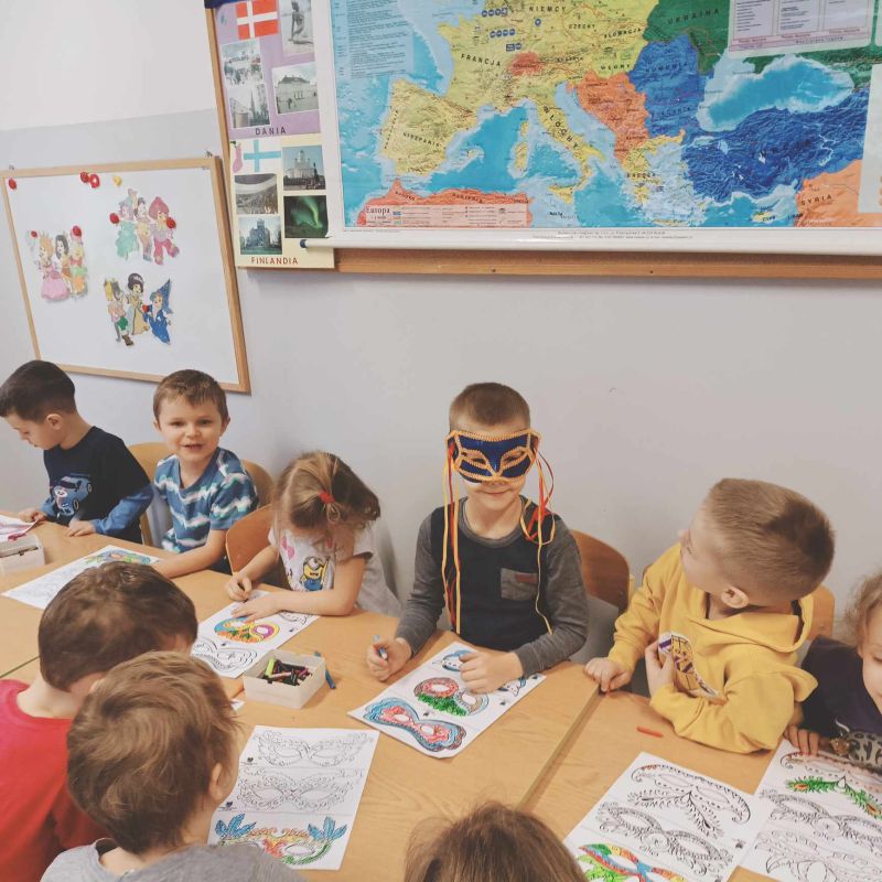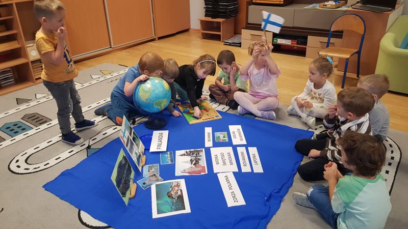 Natomiast dzieci z grupy Montessori, w ramach „Wędrówek po Europie”, poznały już Finlandię oraz Włochy. Działania zostały rozpoczęte od ułożenia kontynentów na mapie świata w tym umieszczenia naszego kontynentu. Następnie przedszkolaki ułożyły mapę puzzlową Europy, zwróciły uwagę na usytuowanie Polski i Włoch. Poznały symbole narodowe oraz wiele ciekawostek dotyczących Włoch. Była też praca plastyczna z ulubioną włoską potrawą, czyli pizzą. Montessorki podczas realizacji cyklu zajęć odwiedziły także Finlandię. Nie obyło się bez wizyty w Rovanieni – wiosce Świętego Mikołaja, ponadto dzieci posłuchały opowieści o Muminkach, łowiły rybki w przejrzystym jeziorze, dowiedziały się, co to jest zorza polarna oraz zachwycały się pięknem zimowego krajobrazu skandynawskiego kraju.
