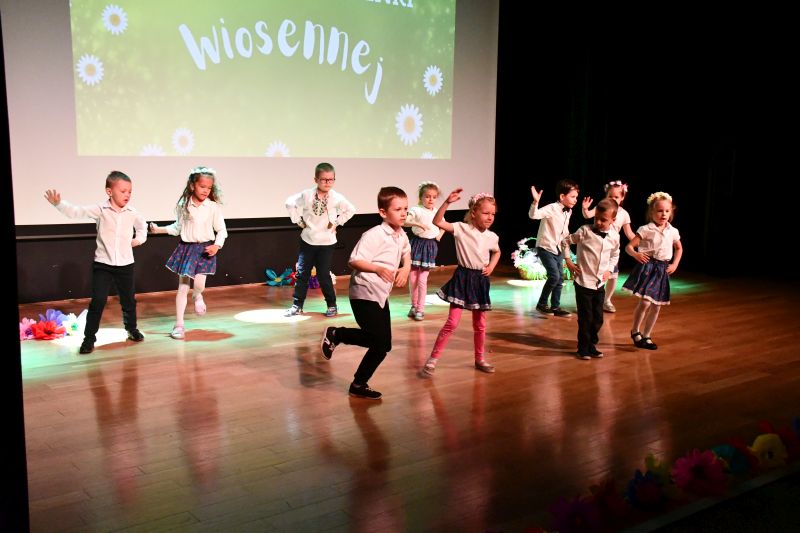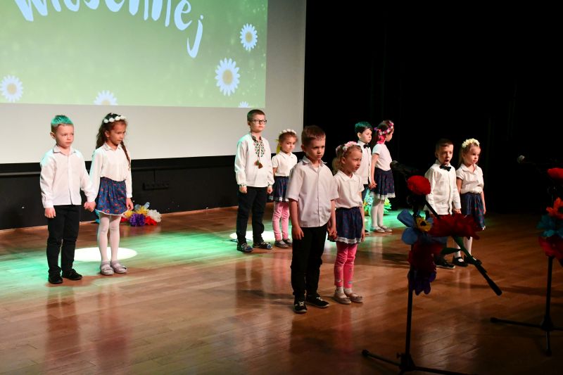 W sali kameralnej MOK, zamienionej w wiosenną łąkę pełną kwiatów, przegląd poprowadziły Pani Wiosna (Aleksandra Michalska) i Zefirek (Monika Samborska). Otworzyła go grupa „Motylki” z P nr 3, która zaprezentowała inscenizację do utworu „Idzie wiosna polną drogą”. Później na scenie wystąpiły: