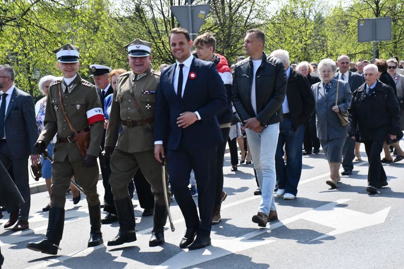– Wojna Rosji z Ukrainą przewartościowała w Polsce i Europie wiele poglądów i działań politycznych – mówił burmistrz Waldemar Jakson. – W dniu dzisiejszym warto, w wymiarze historycznym, zestawić racje przeciwników Konstytucji 3 maja, związanych z konfederacją targowicą, powstałą pod patronatem cesarzowej Rosji, Katarzyny II, i jej zwolenników. Są to dwie racje o fundamentalnym znaczeniu dla polskiego doświadczenia dziejowego. Z jednej strony wolność, ugruntowana w tradycji, rozumiana na sposób republikański – wolność obywatela Rzeczypospolitej, zagwarantowana prawem wyboru króla. Z drugiej strony niepodległość Polski od obcego panowania. W preambule ustawy rządowej 3 maja 1791 roku pobrzmiewa gorycz doświadczenia państwa rozrywanego przez ościenne potęgi, trawionego niemocą i bezprawiem: „Wolni od hańbiącej, obcej przemocy nakazów, ceniąc drożej nad życie, nad szczęśliwość osobistą, egzystencję polityczną niepodległość zewnętrzną i wolność wewnętrzną narodu”. Jeden ze zwolenników konstytucji, ks. Stanisław Konarski, wskazał wyraźnie to, co winno stać się postawą patriotycznej identyfikacji – suwerenność, niepodległość zewnętrzna państwa, któremu służą i z którego wolności korzystają obywatele. W swym głównym dziele „O skutecznym rad sposobie” postawił proste pytanie – gdzie będzie wolność, kiedy zginie sama Rzeczpospolita? Ostrzegał: „Opieka sąsiedzka może być macochą naszej swobody, matką jej być nie może”. W ocenie przywódców konfederacji targowickiej trzeba w najlepszym razie przywołać znaną później alternatywę. Zdrada czy głupota? Jeśli za wszelką cenę uwolnimy Targowicę od zarzutu zdrady, to nie da się jej uwolnić od zarzutu w konsekwencjach politycznych równie ciężkiego, straszliwej głupoty. Jak pisze prof. Andrzej Nowak, „nie dostrzegli przygotowań Rosji do rozbiorów, nie zauważyli możliwości wykorzystania do tego celu wojsk rosyjskich wprowadzonych pod pretekstem, którego Targowica dostarczyła. Nie zauważyli możliwości porozumienia przez potężną „aliantkę” nie z polskimi „obrońcami wolności” przed „despotyzmem króla”, ale z tymi samymi partnerami do rozbiorów, z którymi już raz rozbioru dokonała. Działali dla wzmocnienia Imperium Rosyjskiego, nie dla ratowania Polski. To właśnie jest sedno głupoty równie zbrodniczej jak zdrada. To jest lekcja targowicy, którą warto pamiętać”. Dzisiaj, mimo upływu czasu, źródła zagrożeń dla polskiej państwowości i polskiej siły są dokładnie takie same. Zmagają się na naszym terytorium stronnictwa hetmańskie, dworskie, patriotyczne. Ambasadorowie wypłacają sakiewki dukatów, choć w formie przelewów, stypendiów, posad w mediach wydawanych dla Polaków, karier w Brukseli, medali od Niemców, interesów z Rosjanami. Znów niektórzy wmawiają Polakom, że bezpieczeństwo i praworządność osiągnąć można opierając się tylko o siłę zewnętrzną. Jeszcze niedawno urzędujący szef dyplomacji składał hołd Berlinowi ponaglając, by Niemcy brały więcej nad nami władzy. Ale przecież kłopot nie tylko w tych wypowiedziach. Wielkie złudzenie wolności i niepodległości możliwej do uzyskania w ten sposób kusi wielu Polaków. Jest mirażem niepodległości kupionej za dwa grosze i dwie krople krwi, jak mówił wielki Polak, Józef Piłsudski. Musimy umieć więcej widzieć niż kuglarstwo polityczne. Musimy patrzeć przez nie i umieć dostrzegać istotę wielu tych zabiegów. Chodzi wszak o przeniesienie centrum podejmowania wszystkich decyzji politycznych i gospodarczych dotyczących Polski poza jej granice. Można to pięknie nazwać, ale zawsze będzie skutkowało owymi hańbiącymi nakazami. Suwerenność i wolność raz utraconych nie odzyskuje się ani łatwo, ani tanio. Można się o tym przekonać, patrząc na walkę narodu ukraińskiego z barbarzyńskim najazdem rosyjskim. Tam też długo uważano, że nikt na nich nie napadnie a zewnętrzne gwarancje znaczą wiele. Oczywiście, warto być w sojuszach, tym NATOwskim i tym europejskim, ale tylko jako silne, samodzielne, zdolne do obrony państwo, jako naród wolnych obywateli, gotowych się bić o swoją ojczyznę i pracować dla niej. Pamiętajmy, to jest wciąż walka o wolność od hańbiących obcej przemocy nakazów, o niepodległość wewnętrzną i wolność zewnętrzną narodu. Nie ma wolności bez niepodległości. Niech żyje niepodległa Polska! Niech żyje niepodległa Ukraina!